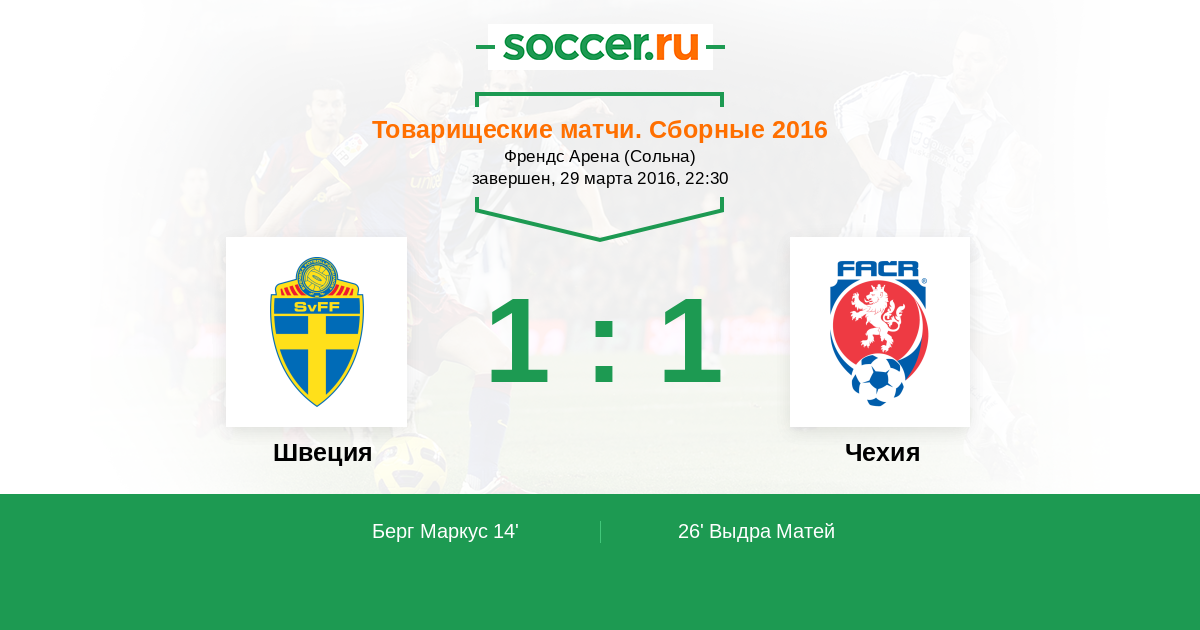 Протокол матча Швеция против Чехия