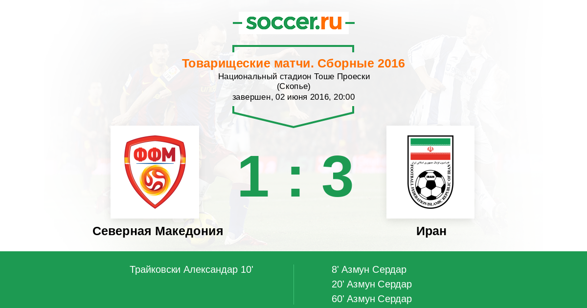 Протокол матча Северная Македония против Иран