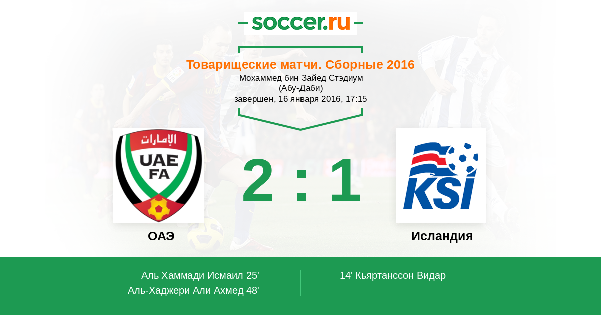 Протокол матча ОАЭ против Исландия