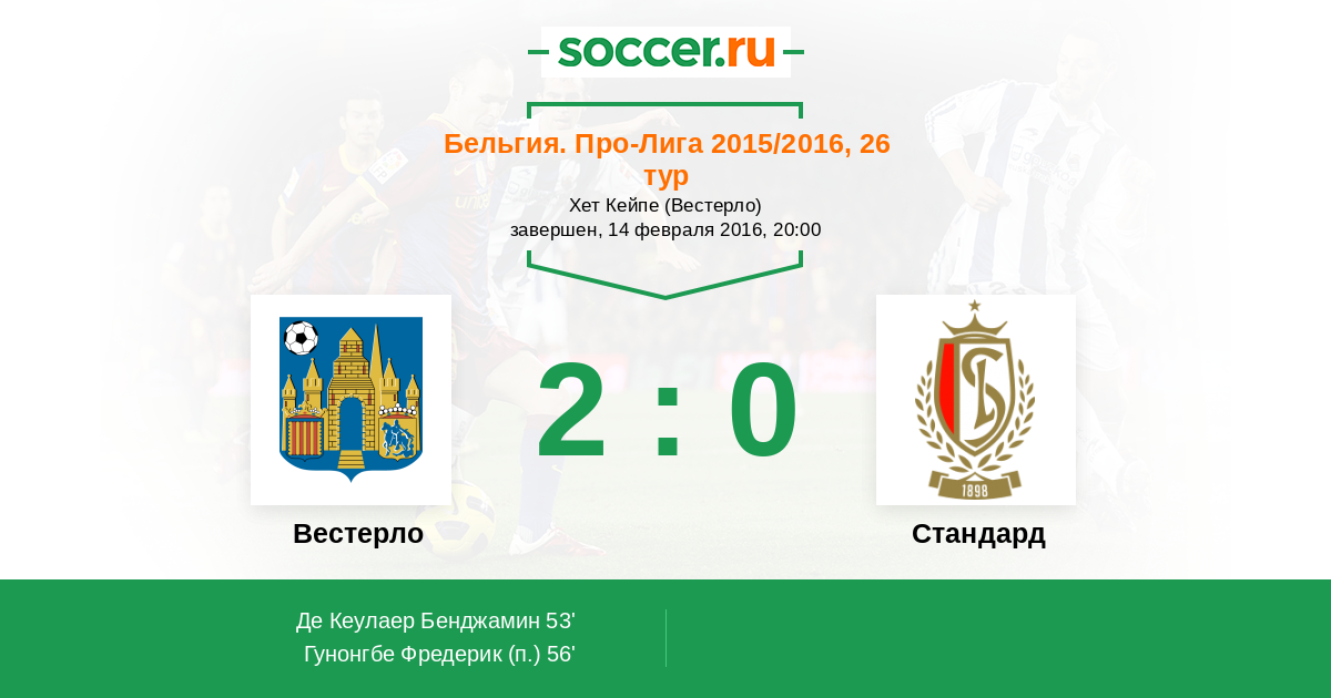 Протокол матча Вестерло против Стандард