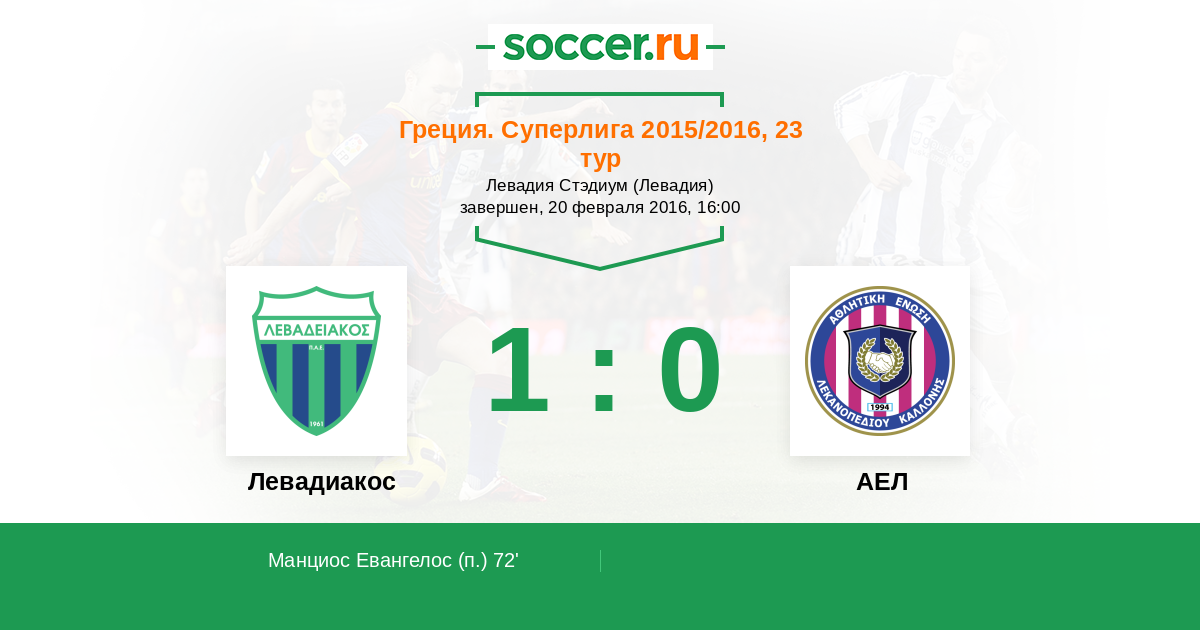 Протокол матча Левадиакос против АЕЛ