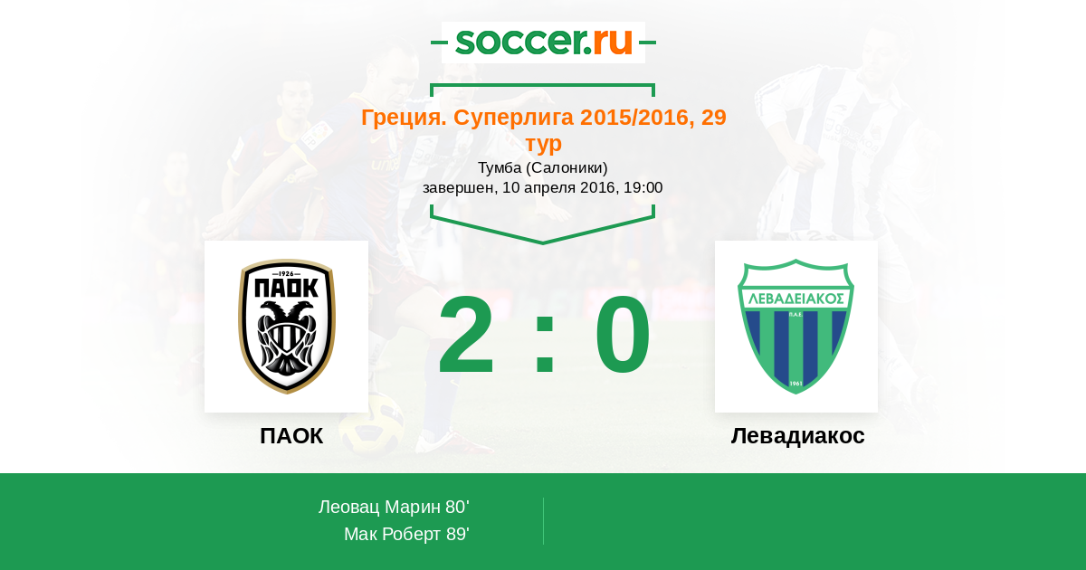 Протокол матча ПАОК против Левадиакос