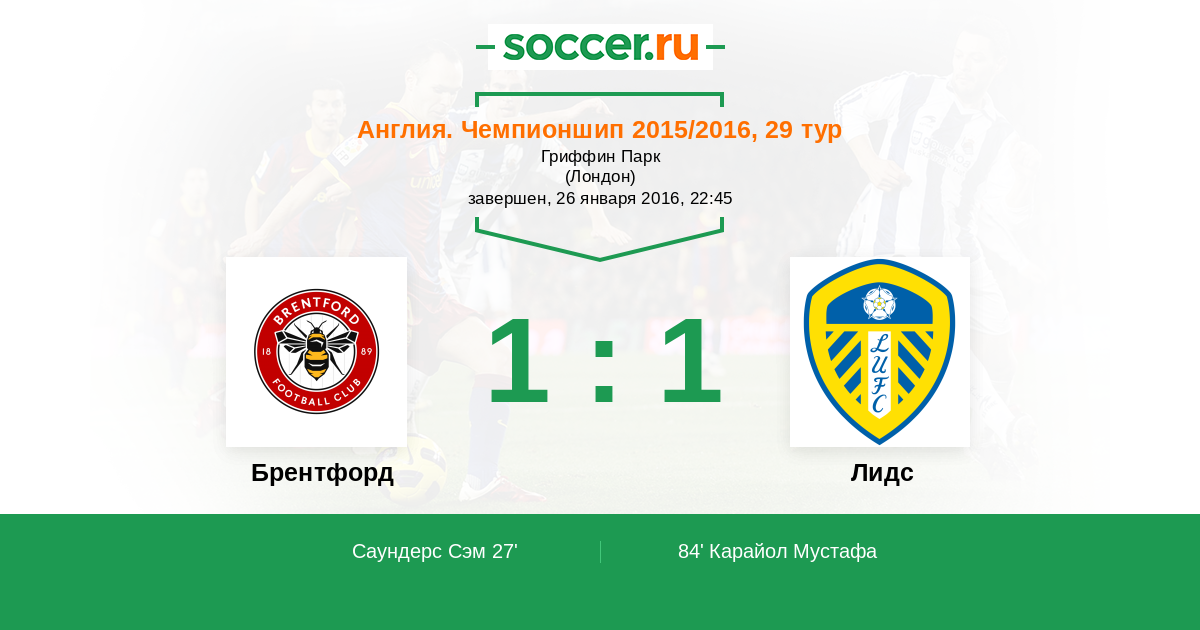 Протокол матча Брентфорд против Лидс
