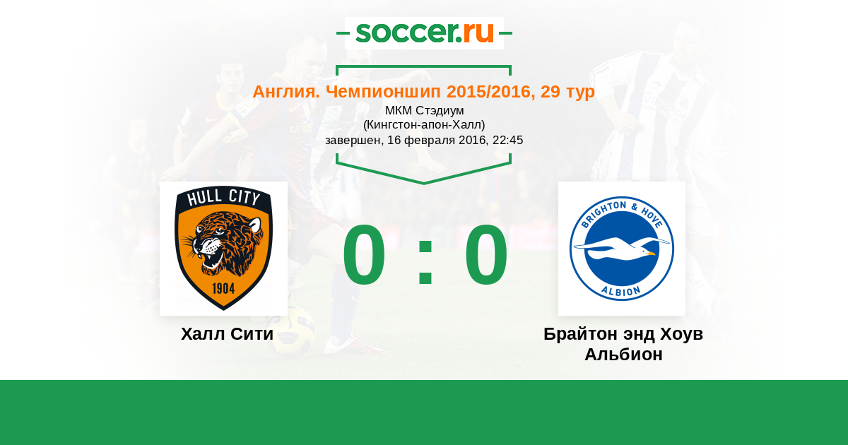 Протокол матча Халл Сити против Брайтон энд Хоув Альбион