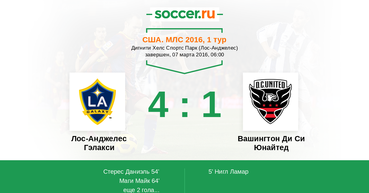 Протокол матча Лос-Анджелес Гэлакси против Вашингтон Ди Си Юнайтед