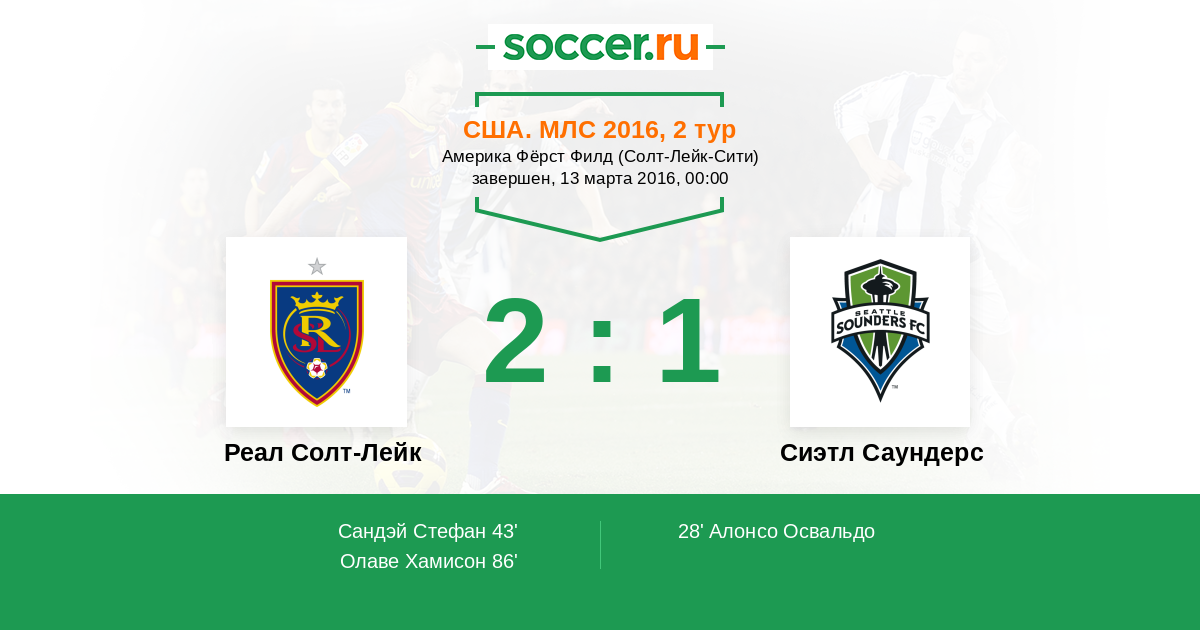 Протокол матча Реал Солт-Лейк против Сиэтл Саундерс