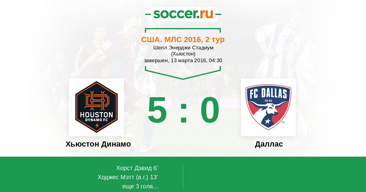 Протокол матча Хьюстон Динамо против Даллас