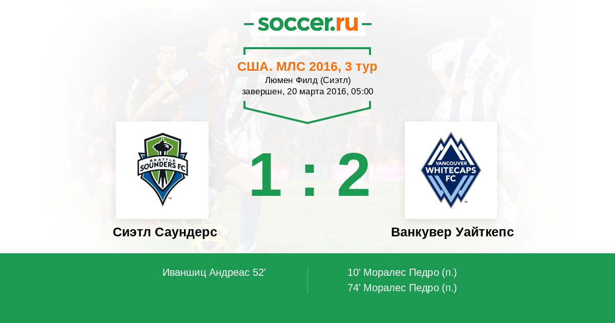 Протокол матча Сиэтл Саундерс против Ванкувер Уайткепс
