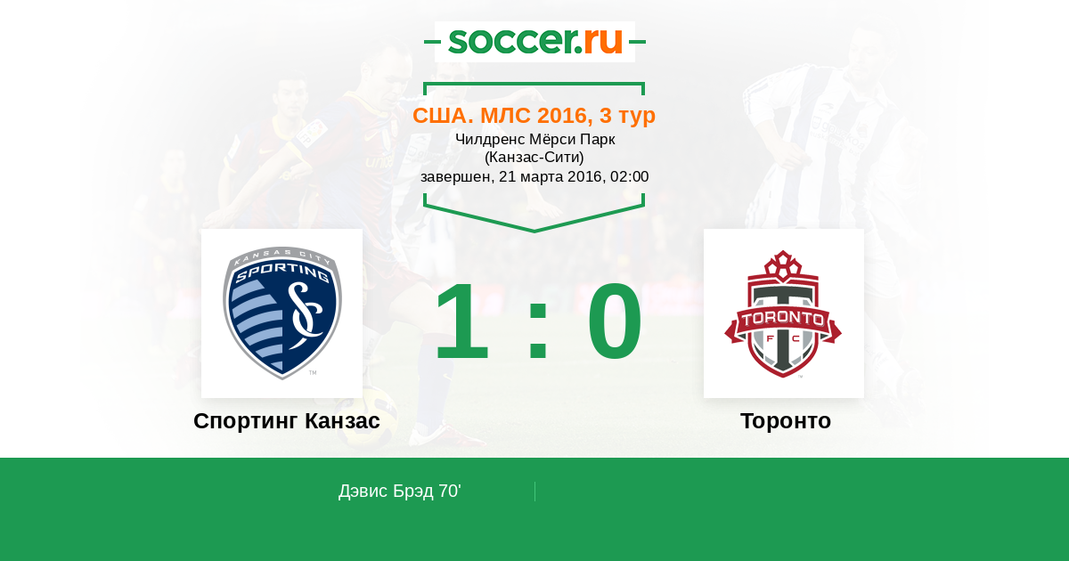 Протокол матча Спортинг Канзас против Торонто