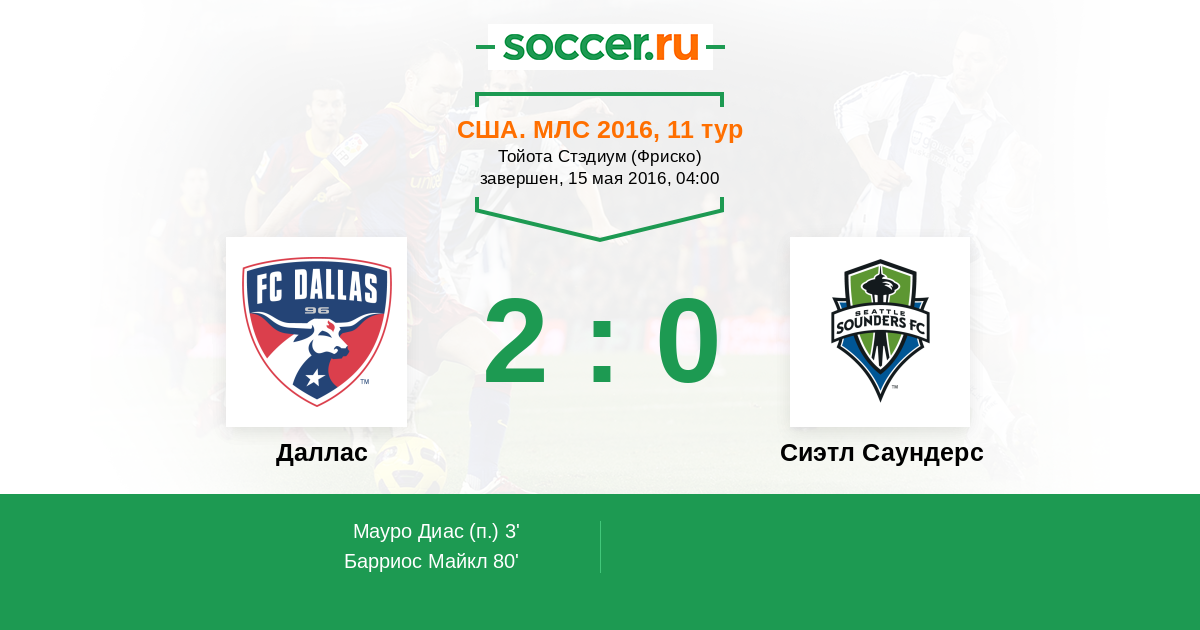 Протокол матча Даллас против Сиэтл Саундерс