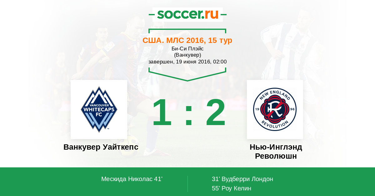 Протокол матча Ванкувер Уайткепс против Нью-Инглэнд Революшн
