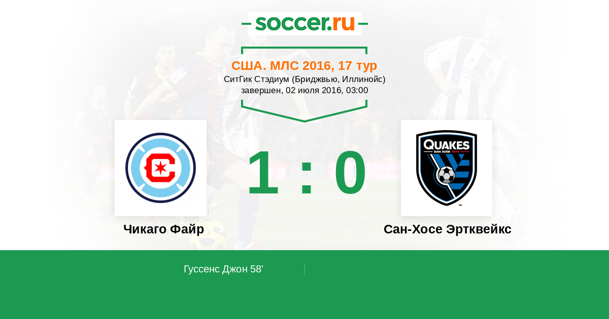 Протокол матча Чикаго Файр против Сан-Хосе Эртквейкс