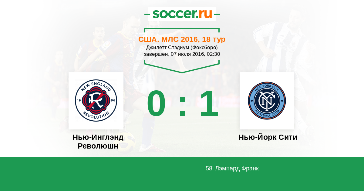 Протокол матча Нью-Инглэнд Революшн против Нью-Йорк Сити