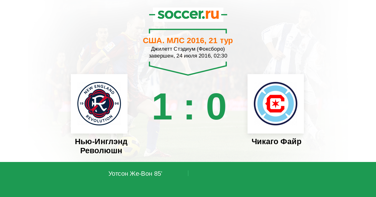 Протокол матча Нью-Инглэнд Революшн против Чикаго Файр