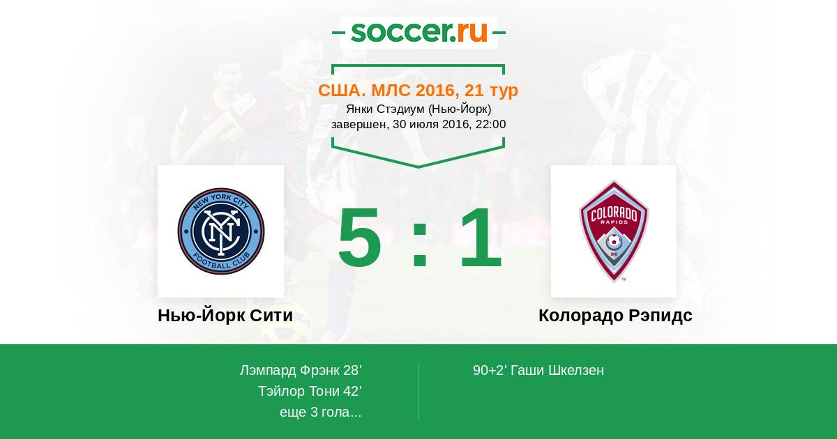 Протокол матча Нью-Йорк Сити против Колорадо Рэпидс