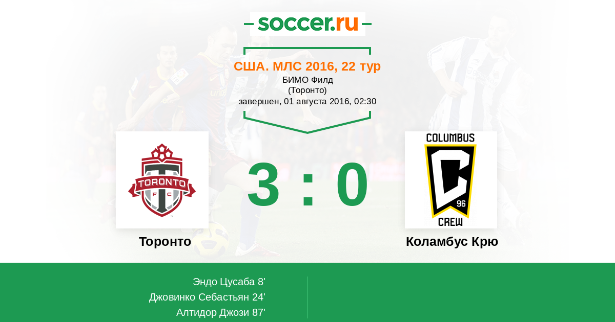 Протокол матча Торонто против Коламбус Крю
