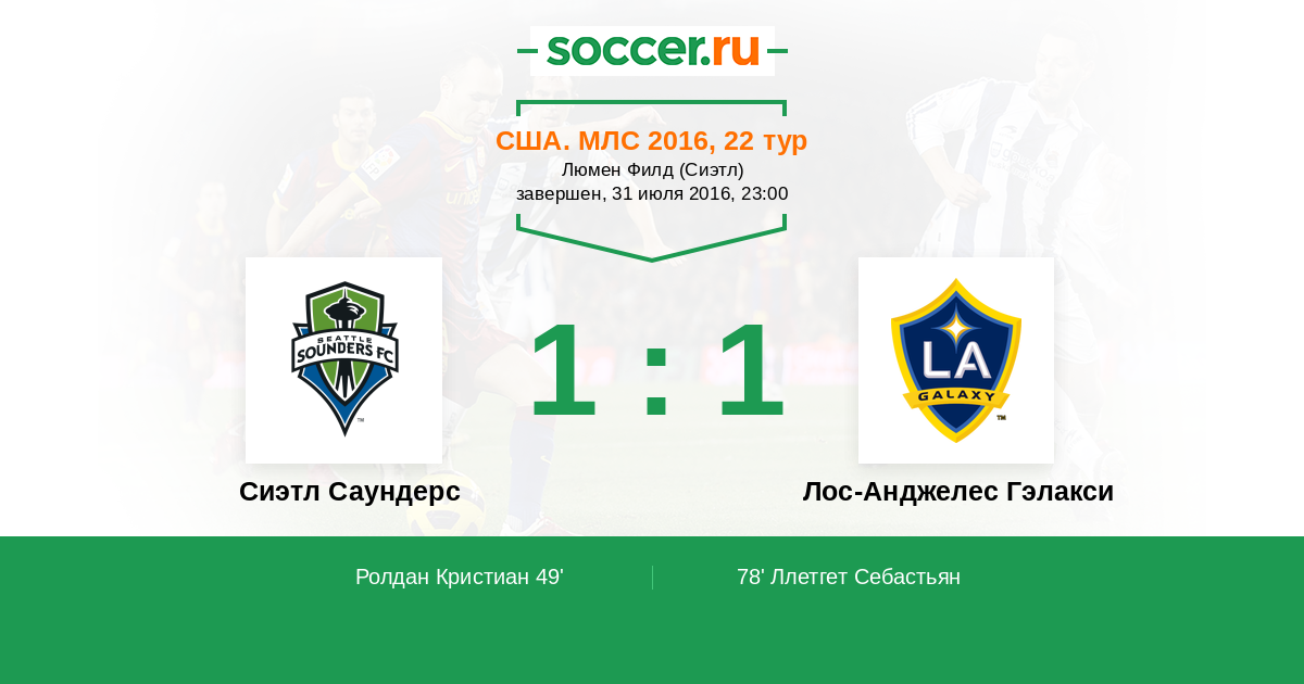 Протокол матча Сиэтл Саундерс против Лос-Анджелес Гэлакси