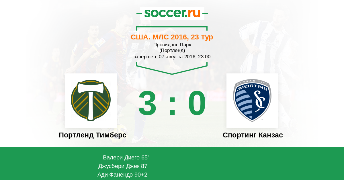 Протокол матча Портленд Тимберс против Спортинг Канзас