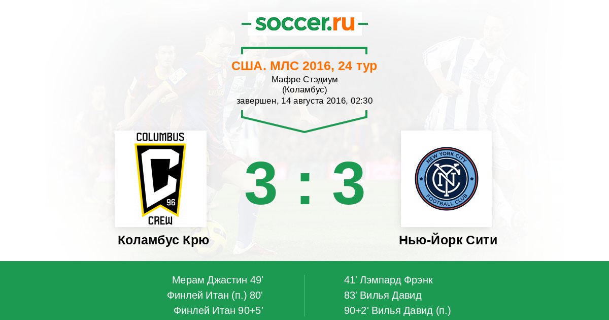 Протокол матча Коламбус Крю против Нью-Йорк Сити
