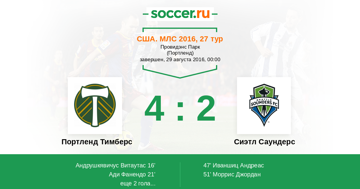 Протокол матча Портленд Тимберс против Сиэтл Саундерс