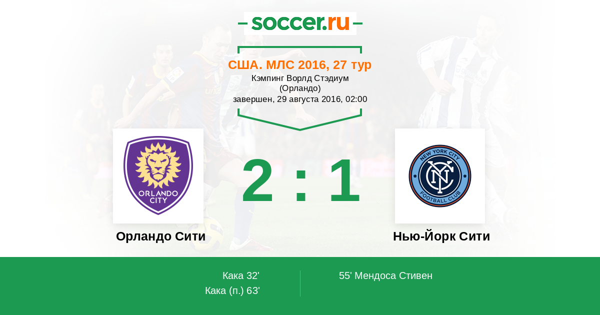 Протокол матча Орландо Сити против Нью-Йорк Сити