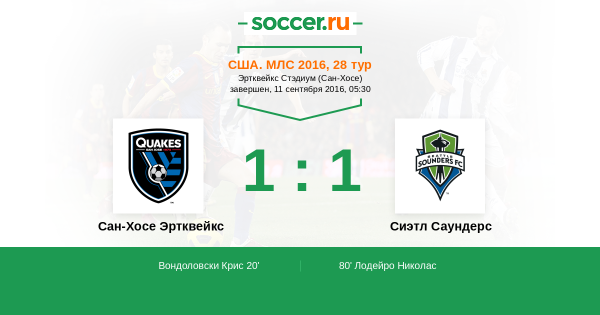 Протокол матча Сан-Хосе Эртквейкс против Сиэтл Саундерс