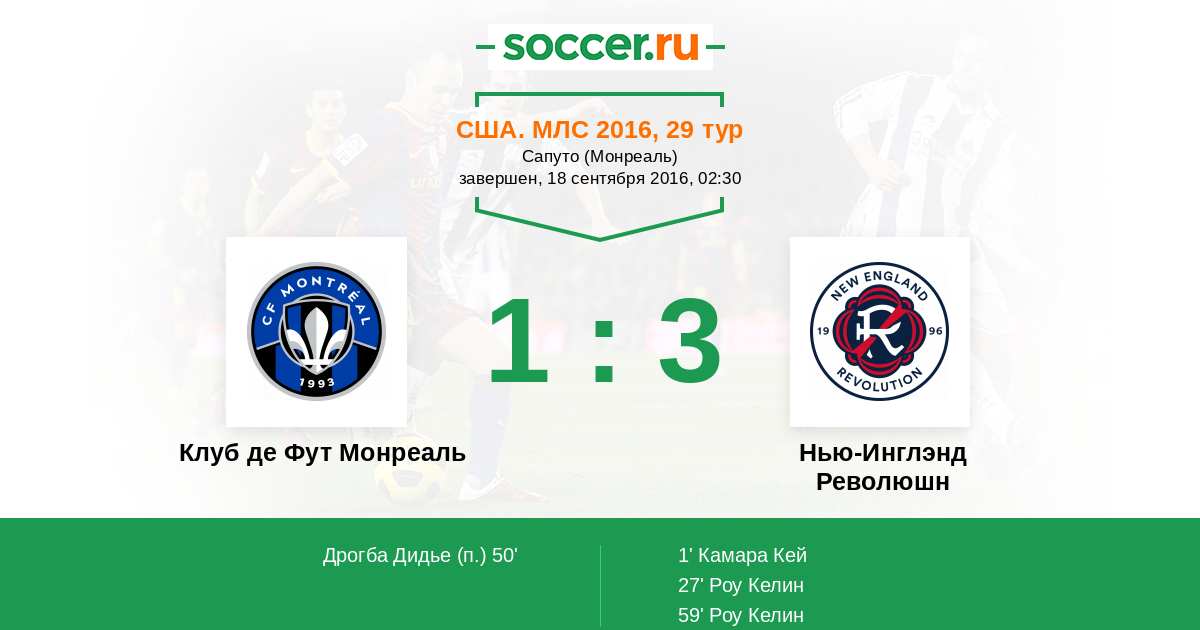 Протокол матча Клуб де Фут Монреаль против Нью-Инглэнд Революшн
