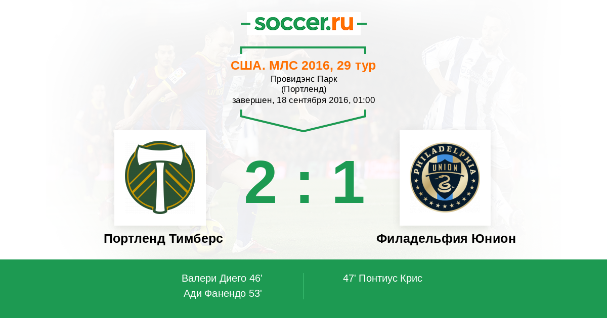 Протокол матча Портленд Тимберс против Филадельфия Юнион