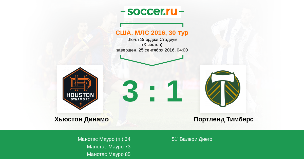 Протокол матча Хьюстон Динамо против Портленд Тимберс