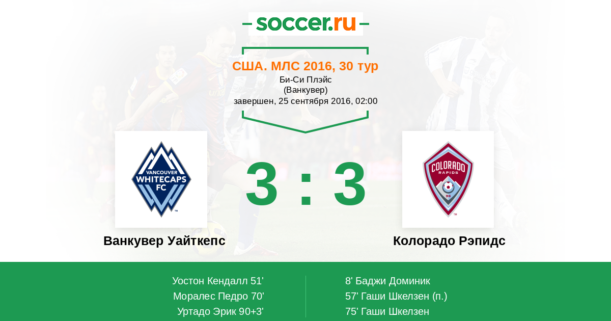 Протокол матча Ванкувер Уайткепс против Колорадо Рэпидс