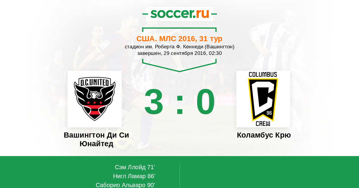 Протокол матча Вашингтон Ди Си Юнайтед против Коламбус Крю