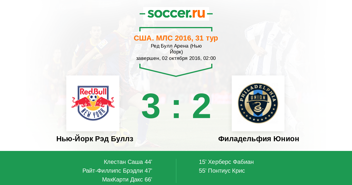 Протокол матча Нью-Йорк Рэд Буллз против Филадельфия Юнион