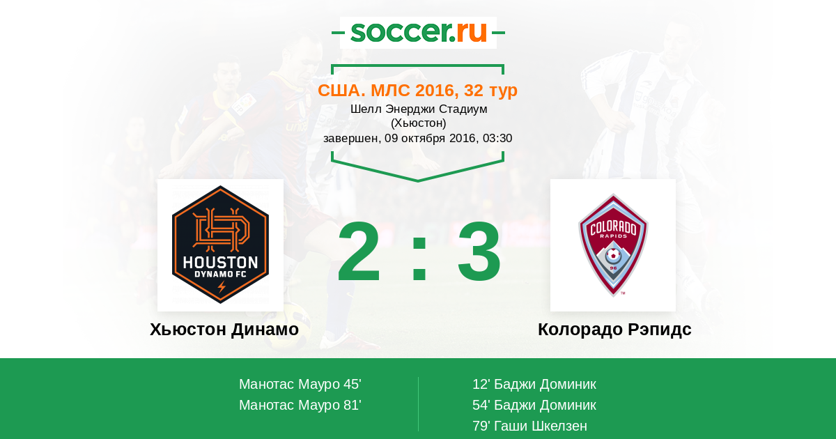 Протокол матча Хьюстон Динамо против Колорадо Рэпидс