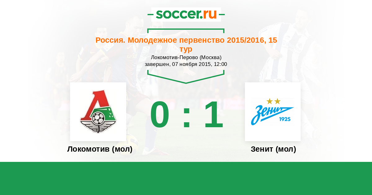 Россия. Премьер-Лига U21 29.05.2015 Зенит (мол) Логотип футбольный клуб Зенит (мол) (Санкт-Петербург) 1:1 Логотип футбольный клуб Локомотив (мол) (Москва) Локомотив (мол)