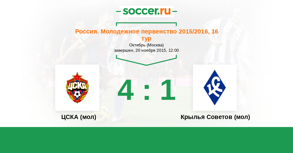 История матча ЦСКА (мол) против Крылья Советов (мол)