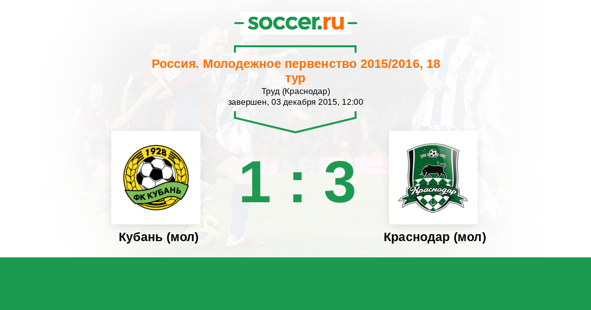 История матча Кубань (мол) против Краснодар (мол)