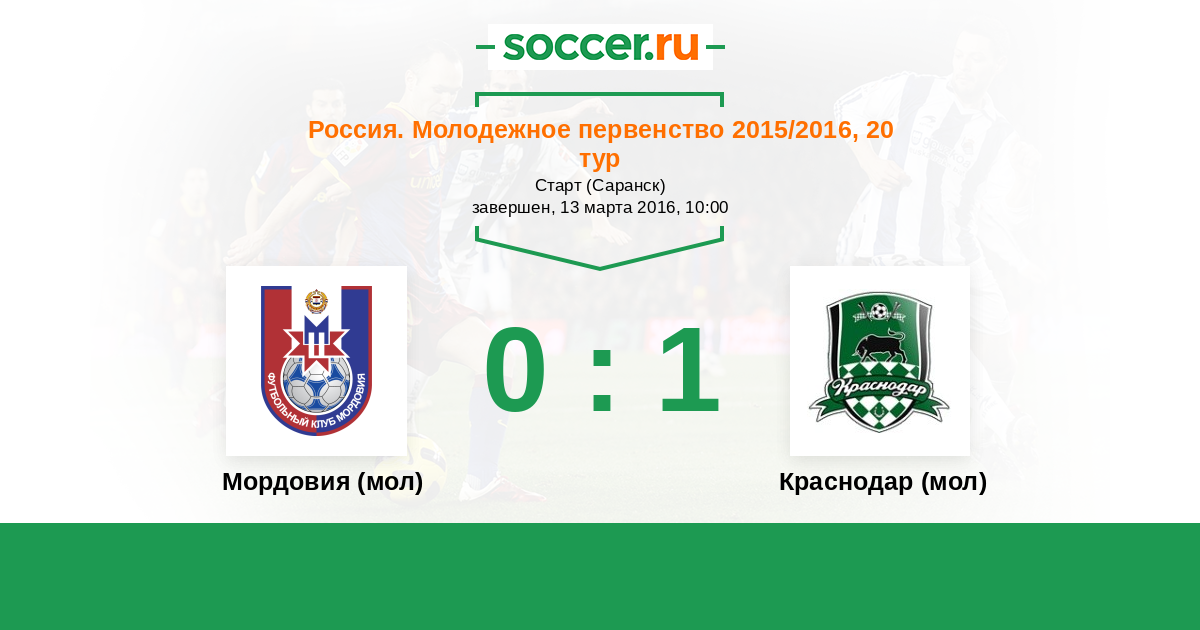 История матча Мордовия (мол) против Краснодар (мол)