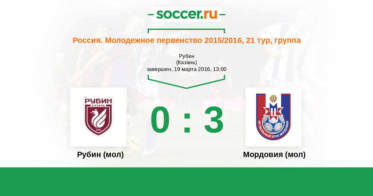 История матча Рубин (мол) против Мордовия (мол)