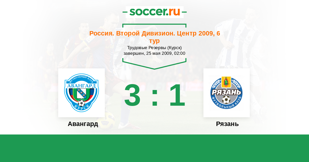 Россия. Вторая лига. Группа 3 24.08.2009 Звезда Рз Логотип футбольный клуб Звезда Рз (Рязань) 0:1 Логотип футбольный клуб Авангард (Курск) Авангард
