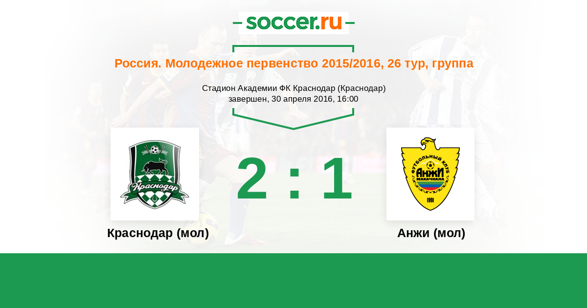 История матча Краснодар (мол) против Анжи (мол)