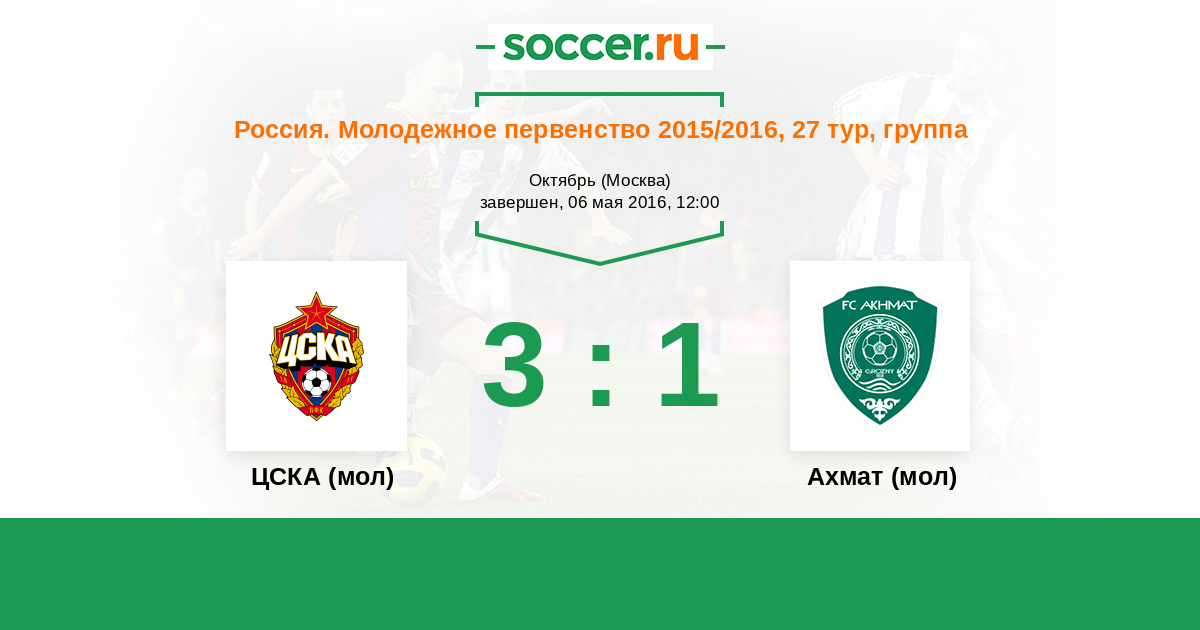 Россия. Премьер-Лига U21 26.08.2017 ЦСКА (мол) Логотип футбольный клуб ЦСКА (мол) (Москва) 1:1 Логотип футбольный клуб Ахмат (мол) (Грозный) Ахмат (мол)