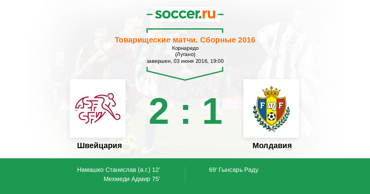 Протокол матча Швейцария против Молдавия