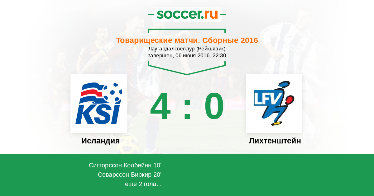 Протокол матча Исландия против Лихтенштейн