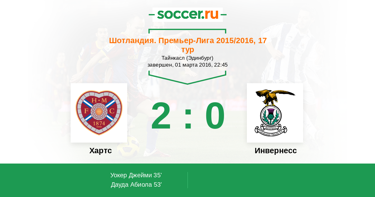 Протокол матча Хартс против Инвернесс