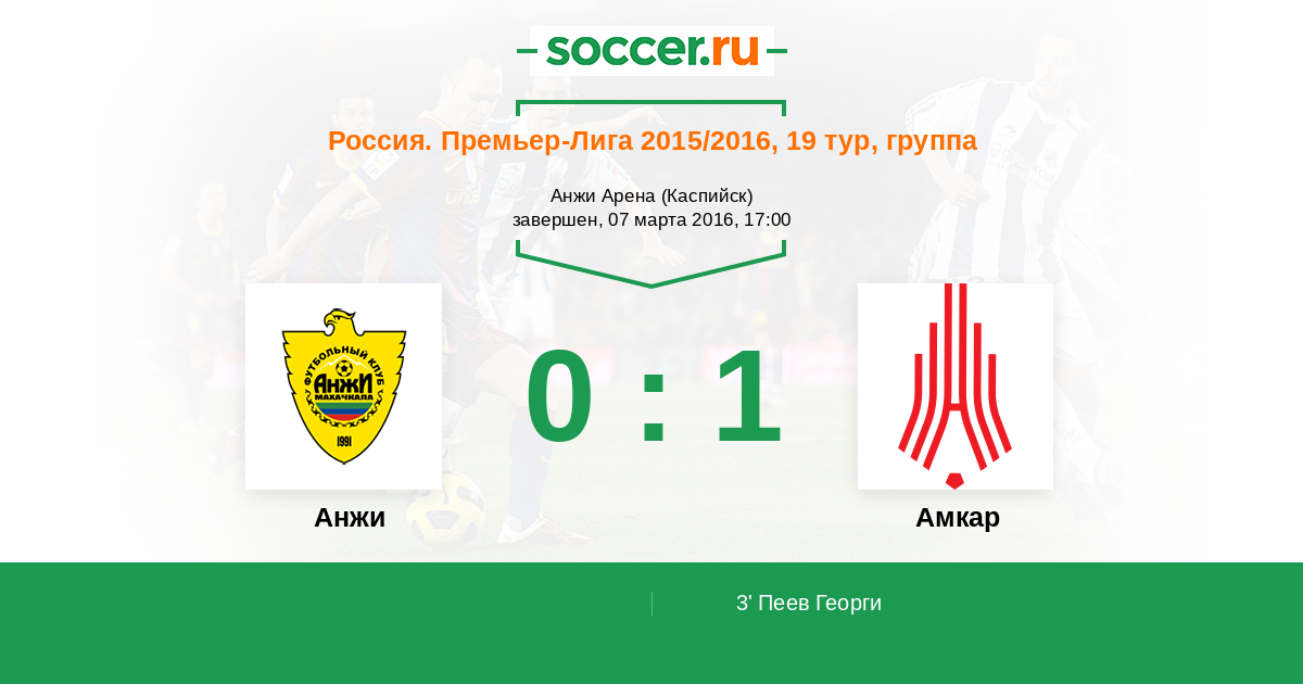 Протокол матча Анжи против Амкар
