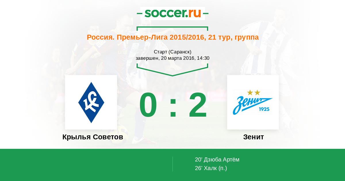 Протокол матча Крылья Советов против Зенит