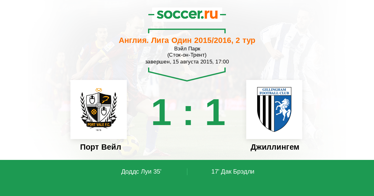 Протокол матча Порт Вейл против Джиллингем