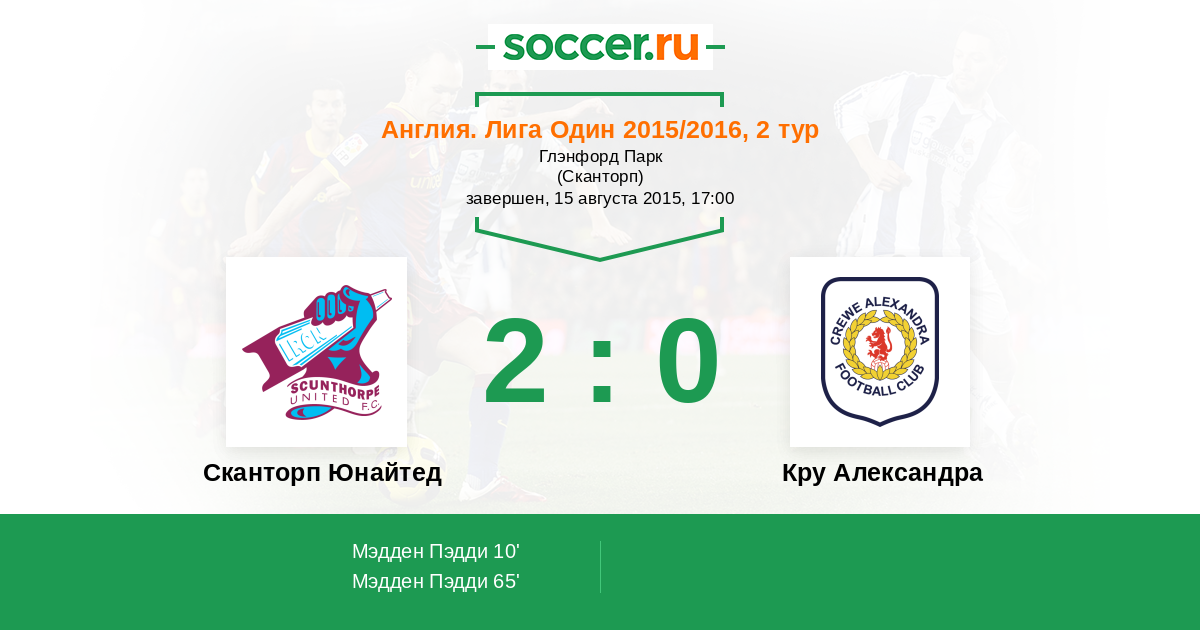 Протокол матча Сканторп Юнайтед против Кру Александра