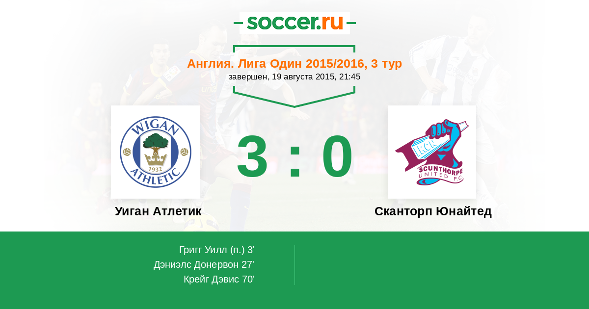 Протокол матча Уиган Атлетик против Сканторп Юнайтед