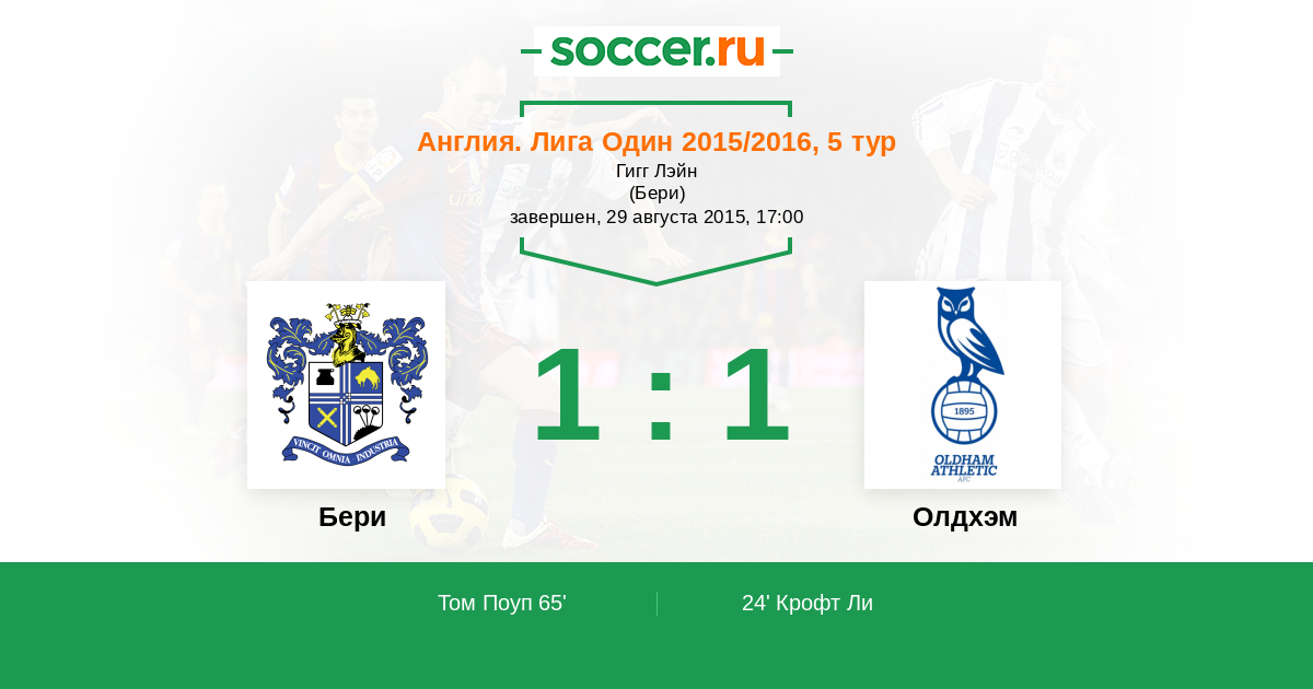 Протокол матча Бери против Олдхэм